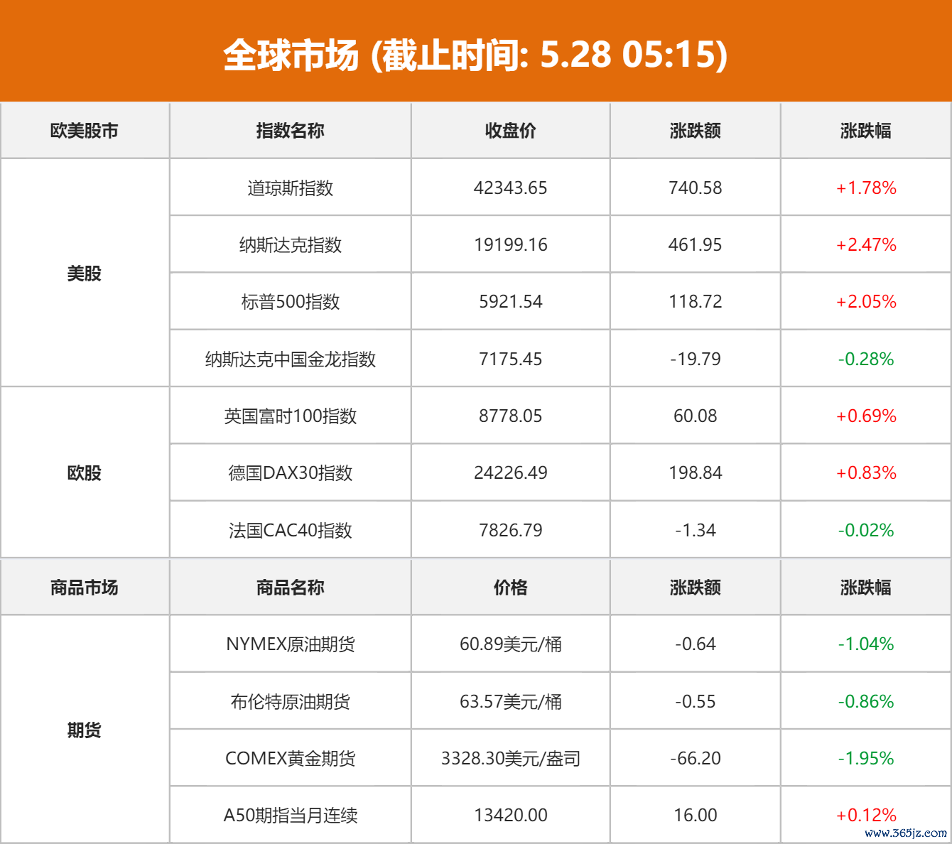 美股:纽约股市三大股指27日上涨,截至当天收盘,道琼斯工业平均指数比前一交易日上涨740.58点,收于42343.65点,涨幅为1.78%;标准普尔500种股票指数上涨118.72点,收于5921.54点,涨幅为2.05%;纳斯达克综合指数上涨461.96点,收于19199.16点,涨幅为2.47%。