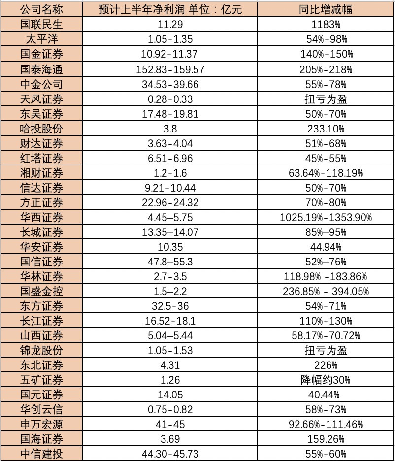 上市券商正陆续披露半年度业绩快报及预告。截至7月14日盘后,A股上市券商及券商概念股中已有30家发布2025年半年度业绩预告、快报。